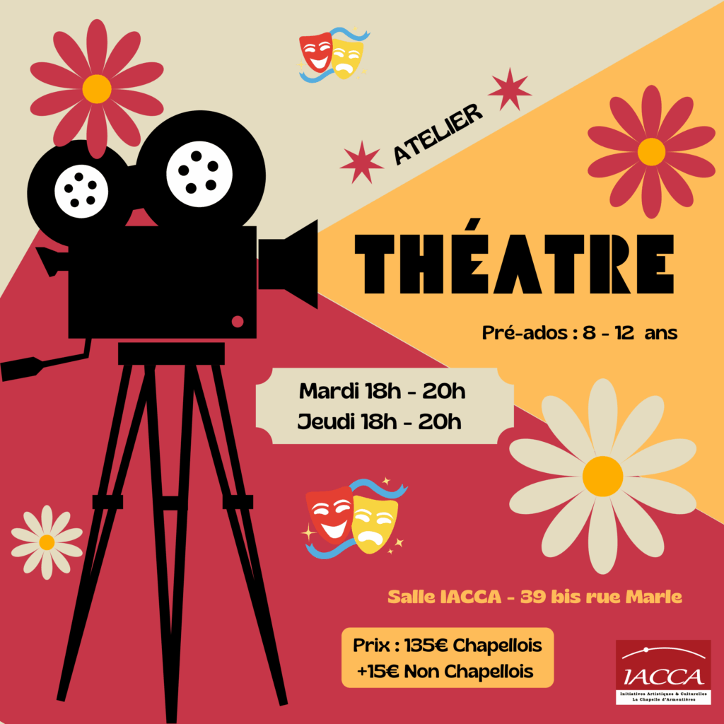 je vous invite à venir au forum des associations le samedi 7 septembre 2024, c’est au complexe sportif, derrière la mairie de La CHAPELLE D’ARMENTIÈRES. Mais a priori, les cours de théâtre pour les enfants ont lieu les mardis soir à 18h30.